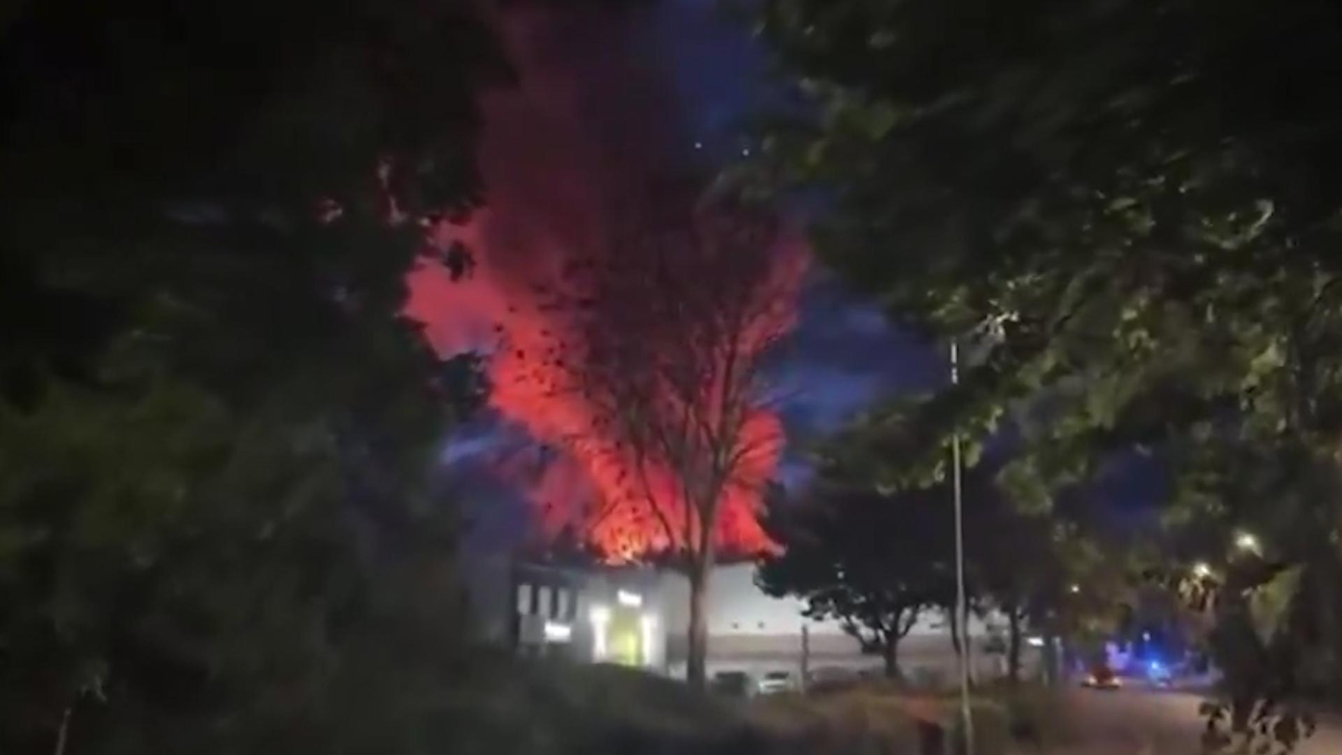 Пожар после взрыва в промзоне Суиндона. Видео