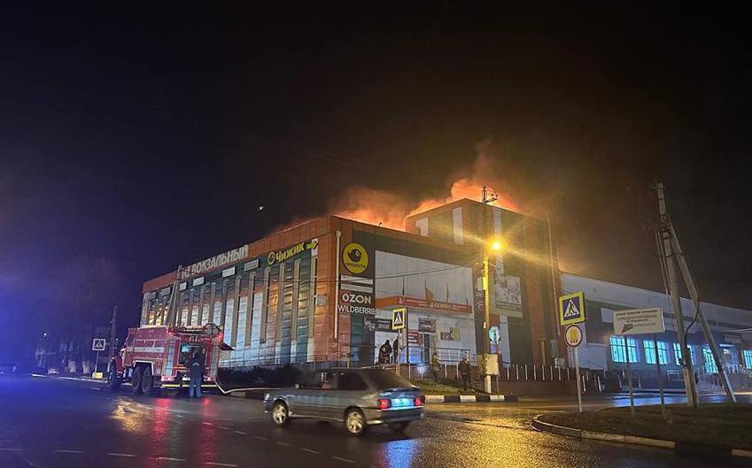 В Короче Белгородской области от удара дронов загорелась кровля ТЦ