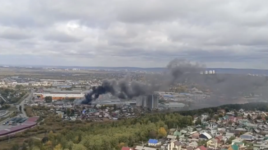 Пламя вспыхнуло на крыше здания с торговыми павильонами в Иркутске, огонь охватил 2,2 тыс.