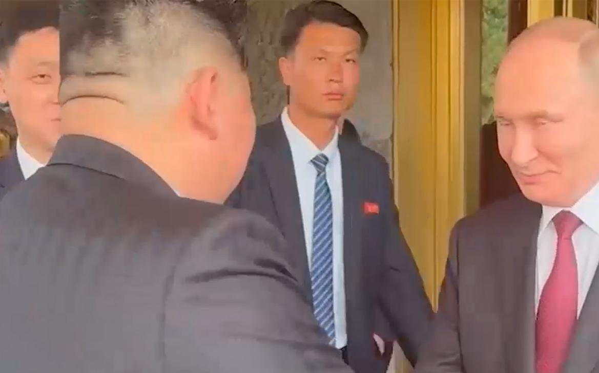 Лидер Северной Кореи Ким Чен Ын, прощаясь с президентом России Владимиром Путиным,