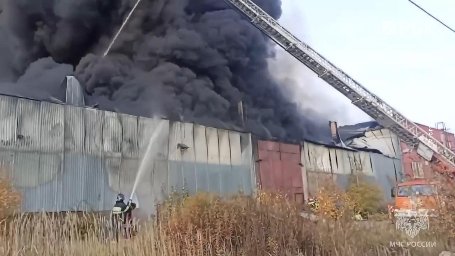 Крупный пожар начался на складе в Новосибирске, вызван пожарный поезд