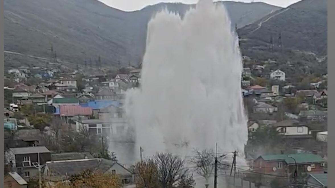 В Новороссийске из-за прорыва главного водовода образовался фонтан