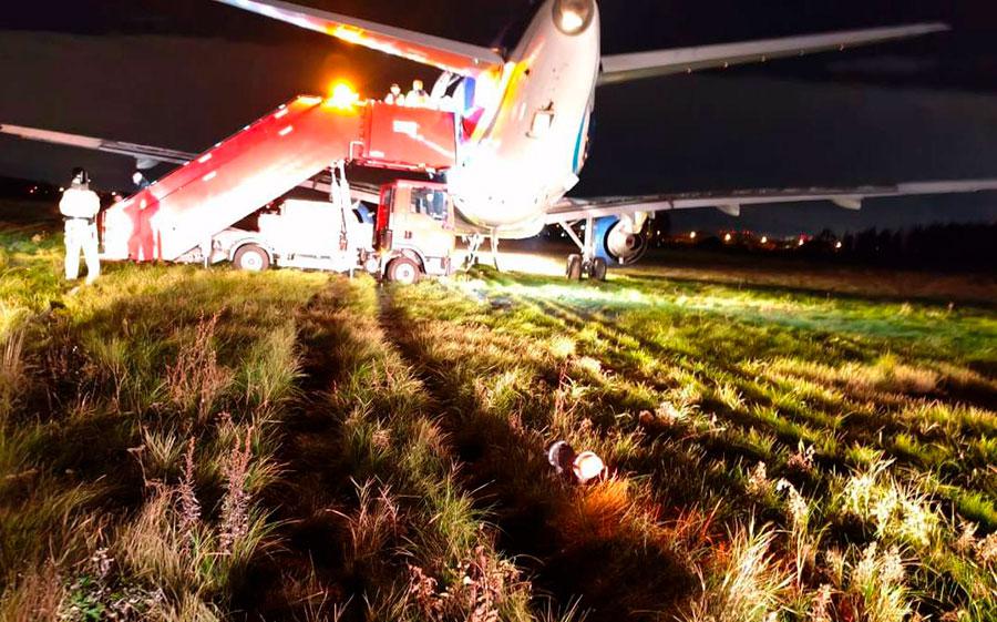 Самолет, совершивший экстренную посадку в петербургском аэропорту Пулково, выкатился за