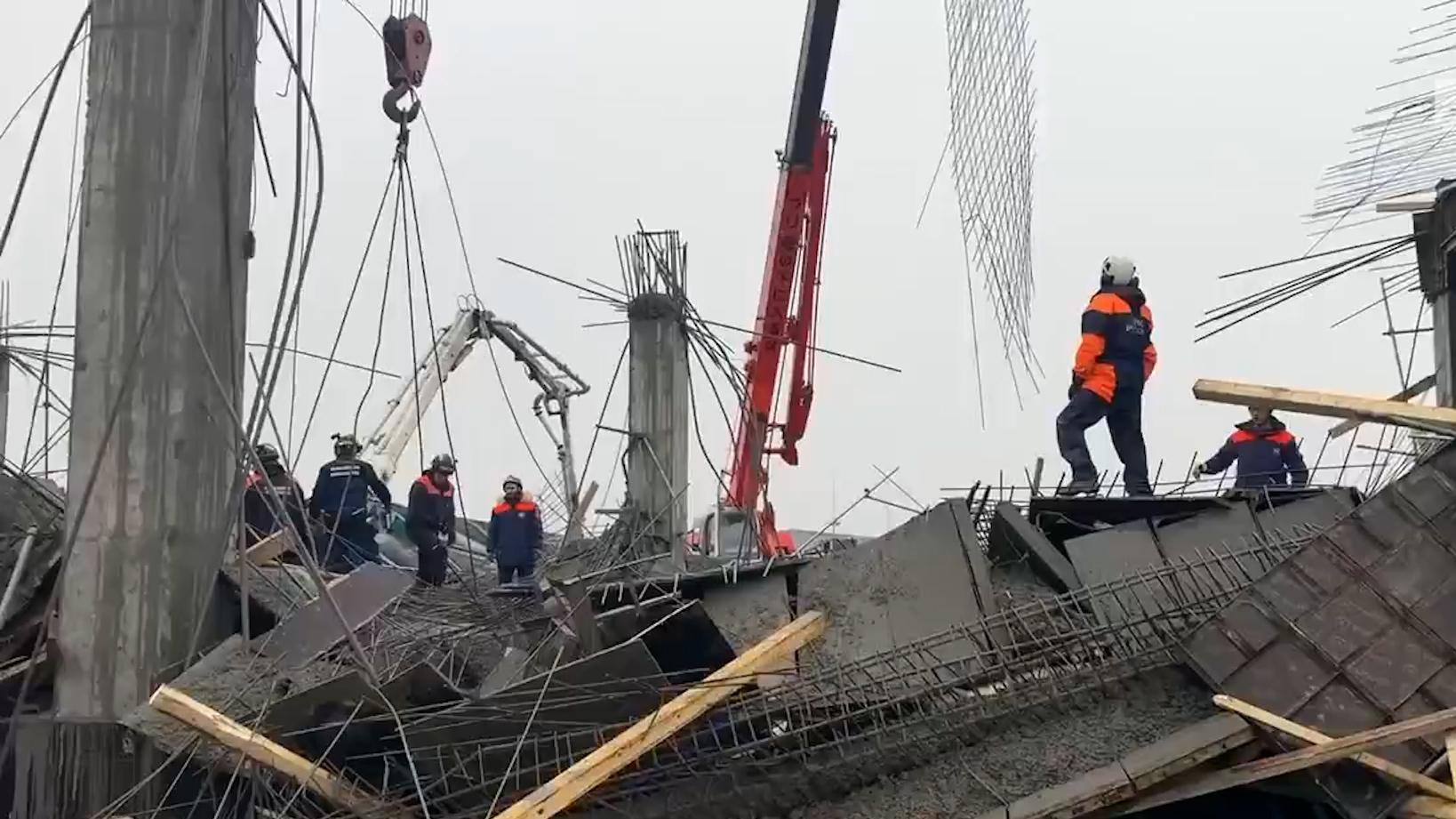 МЧС показало последствия обрушения строящегося здания в Южно-Сахалинске