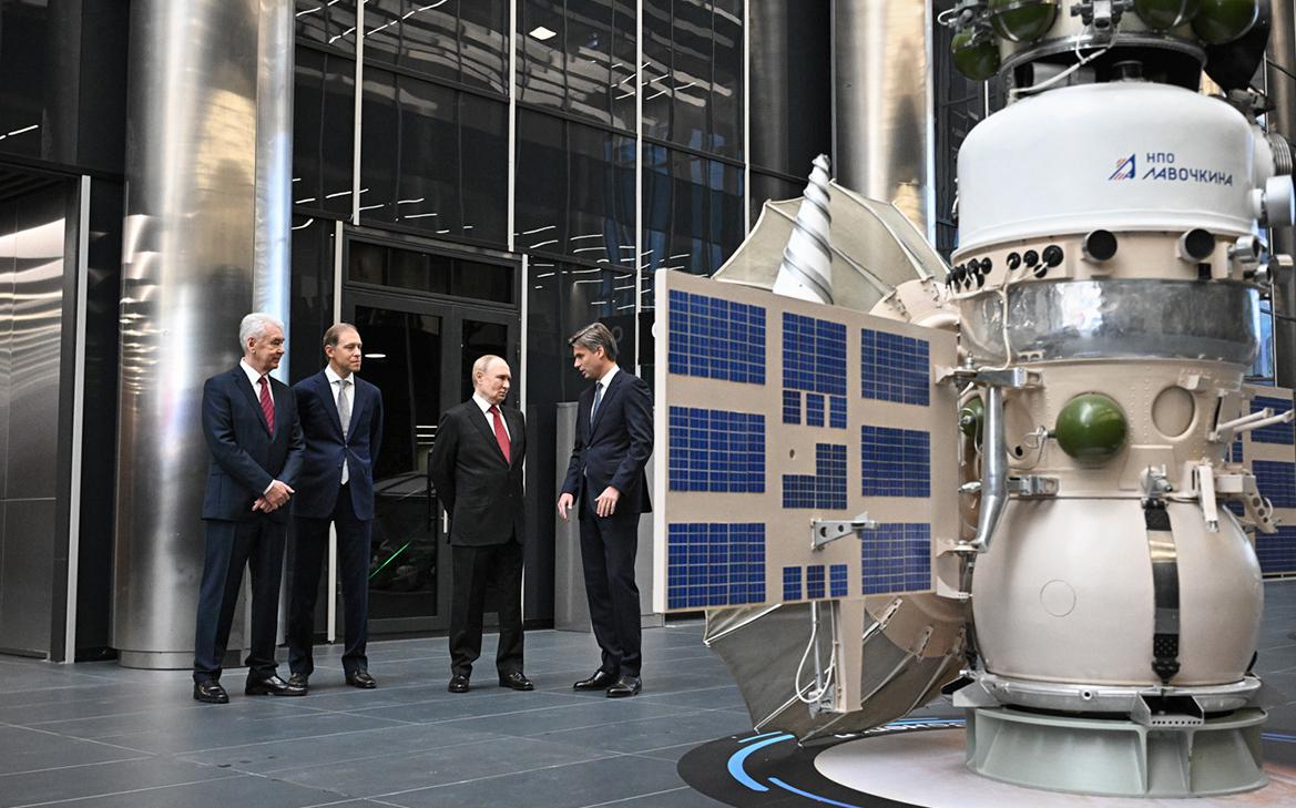 Президент России Владимир Путин, мэр Москвы Сергей Собянин и глава «Роскосмоса» Дмитрий